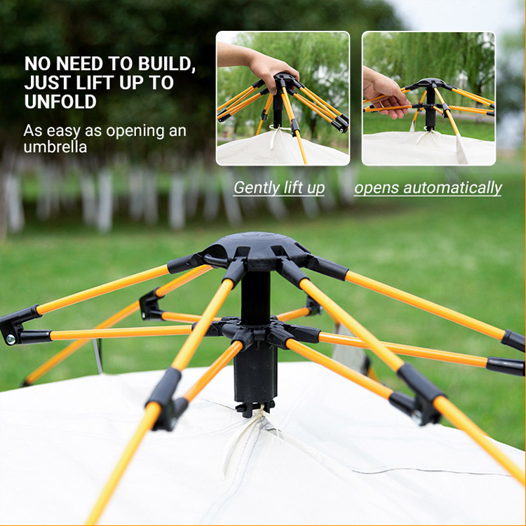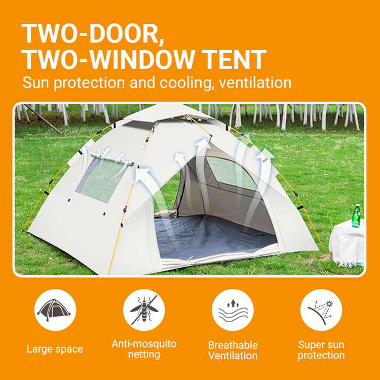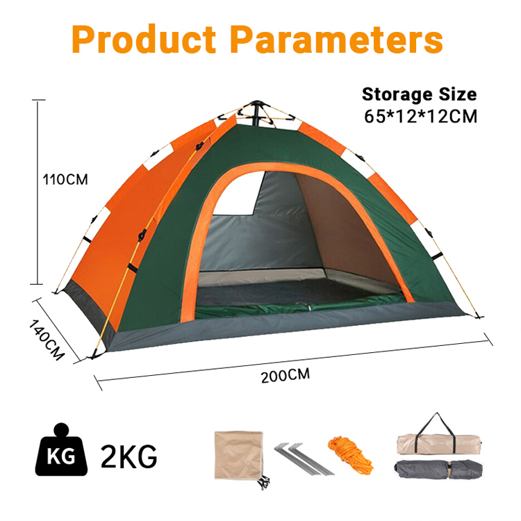 210d Oxford Double-layer ແບບອັດຕະໂນມັດນ້ໍາຝົນ. tent ຊັ້ນສອງຂອງ Oxford-layer ຊັ້ນສອງຊັ້ນນີ້ມີລັກສະນະອັດຕະໂນມັດແລະການປ້ອງກັນຝົນຕົກທີ່ດີກວ່າ. ດ້ວຍເສົາໄຟຟ້າເບົາ ໆ ແລະການອອກແບບທີ່ງ່າຍດາຍ, ມັນສົມບູນແບບສໍາລັບການຕັ້ງຄ້າຍພັກຜ່ອນແລະການອອກຈາກ BBQ.