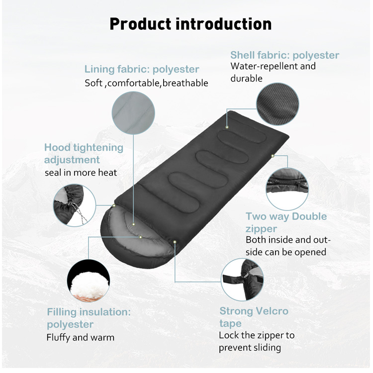 ຊອງຈົດຫມາຍປ້ອງກັນນ້ໍາພາຍນອກລະດູການ 4 ລະດູກາງແຈ້ງການນອນ. ຖົງນອນທີ່ມີຄຸນນະພາບສູງນີ້ມີການກໍ່ສ້າງກັນນ້ໍາທີ່ດີເລີດ, ຮັບປະກັນຄວາມສະດວກສະບາຍແລະຄວາມອົບອຸ່ນຕະຫຼອດສີ່ລະດູ. ເຫມາະສໍາລັບການຕັ້ງຄ້າຍພັກຜ່ອນແລະຍ່າງປ່າໃນສະພາບອາກາດຕ່າງໆ.