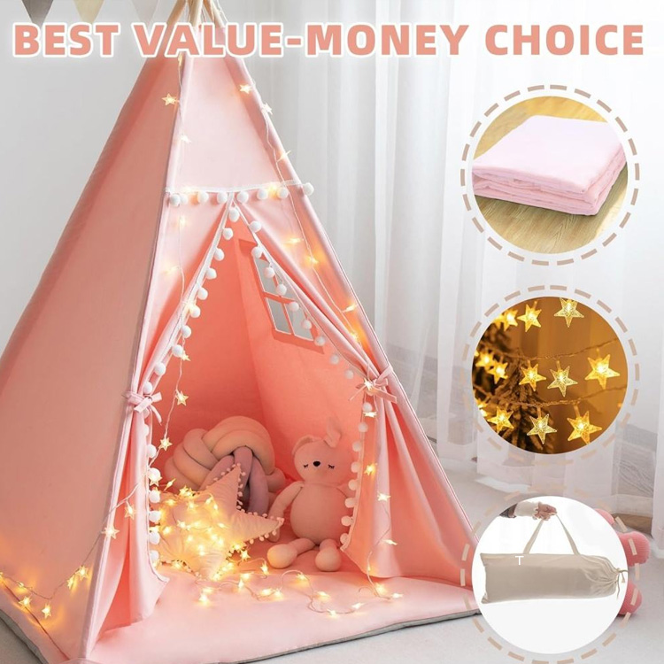 ເດັກນ້ອຍ Patchhouse Canvas Patchouse Tente Tent ສໍາລັບເດັກນ້ອຍທີ່ມີອາວະກາດຫຼິ້ນ MAT. ຜ້າຝ້າຍນີ້ຜ້າຝ້າຍ Canvas Teeepee ປະກອບມີຕຽງທີ່ສະບາຍ, ໄຟເຍືອງທາງທີ່ຫນ້າປະທັບໃຈ, ແລະກໍລະນີທີ່ມີຄວາມສະດວກສະບາຍ. ທີ່ດີເລີດສໍາລັບການຫຼີ້ນການຫຼີ້ນຈິນຕະນາການແລະສ້າງຄວາມຊົງຈໍາຂອງໄວເດັກທີ່ຍືນຍົງ.