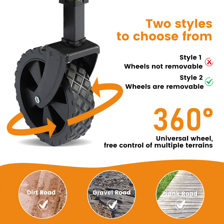 ພ້ອມດ້ວຍຢາງທີ່ມີເມັດ pneumatic ຂະຫນາດ 8 ນິ້ວທີ່ມີຮູບແບບ tread ທີ່ເລິກເຊິ່ງຢູ່ຫ່າງກັນຢ່າງລຽບງ່າຍ, ຫິນ, ຫຍ້າ, ແລະຄວາມຫມັ້ນຄົງໃນຂະນະທີ່ເຮັດໃຫ້ມີຄວາມຫມັ້ນຄົງແລະຄວາມຄ່ອງແຄ້ວ.