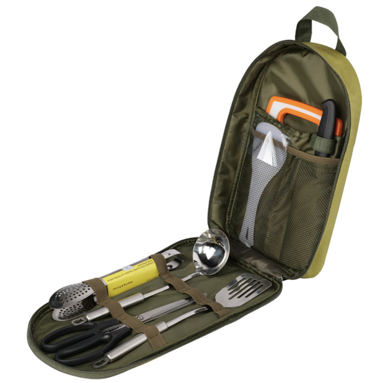 ທຸກສິ່ງທຸກຢ່າງທີ່ທ່ານຕ້ອງການສໍາລັບການປຸງແຕ່ງອາຫານກາງແຈ້ງມາໄດ້ຈັດຂື້ນຢ່າງສົມບູນໃນກະເປົາທີ່ມີກະເປົາເປ້, ກໍາຈັດຄວາມຫຍຸ້ງຍາກໃນການເຕົ້າໂຮມເຄື່ອງມືແລະອຸປະກອນເສີມແຍກຕ່າງຫາກ.