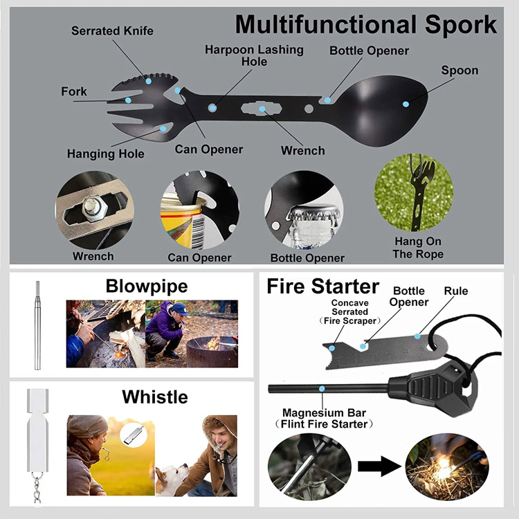 ຊຸດເຄື່ອງມືການລອດຊີວິດຂອງຜູ້ຂາຍສົ່ງສໍາລັບການຕັ້ງແຄມຂອງການລ່າສັດ. ຊຸດເກຍທີ່ສົມບູນແບບນີ້ປະກອບມີ AxS AVE ທີ່ສົມບູນແບບນີ້ປະກອບມີ AxS AVENCY STEFRY, SRANDSTS, ແລະ Starter ໄຟທີ່ຫນ້າເຊື່ອຖື. ອອກແບບສໍາລັບການຕັ້ງຄ້າຍພັກ, ການຍ່າງປ່າ, ການຫາປາ, ການລ່າສັດ, ການລ່າສັດ, ມັນຮັບປະກັນການກຽມພ້ອມສູງສຸດໃນສະຖານະການທີ່ສໍາຄັນ.
